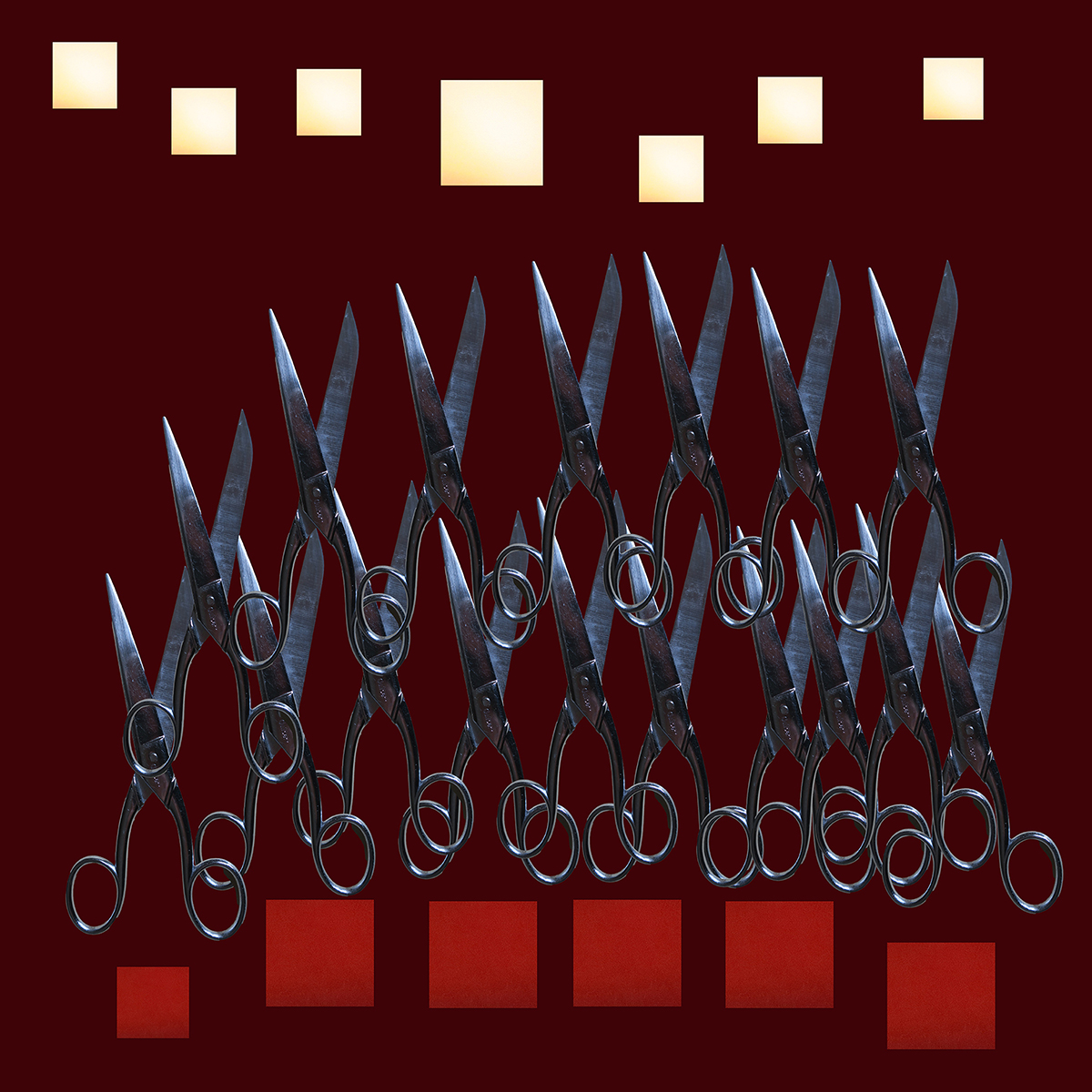 It is a critique of the various forms of violence in our societies and in the world. The photographs highlight its dangerous resurgence, leading to the regression of individuals - hence the creation of knots, tangled balls of knots that suffocate human life. Closed or lying scissors symbolize forced resistance (of men or women) in silence, while open scissors (open mouths), shouting in the light (yellow threads), represent a more assertive protest. The resisters cut the red threads that connect, multiply, and reinforce the violence. The presence of bright yellow threads that connect, multiply, and reinforce the violence. The presence of bright yellow threads among the standing figures expresses the desire for liberation from the shackles of this brutality. The final photograph schematically represents the victory of human resistance under not one sun, but several.