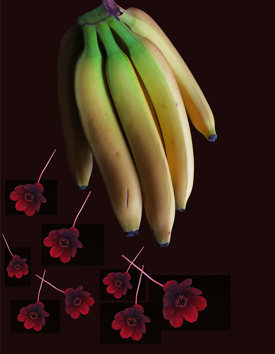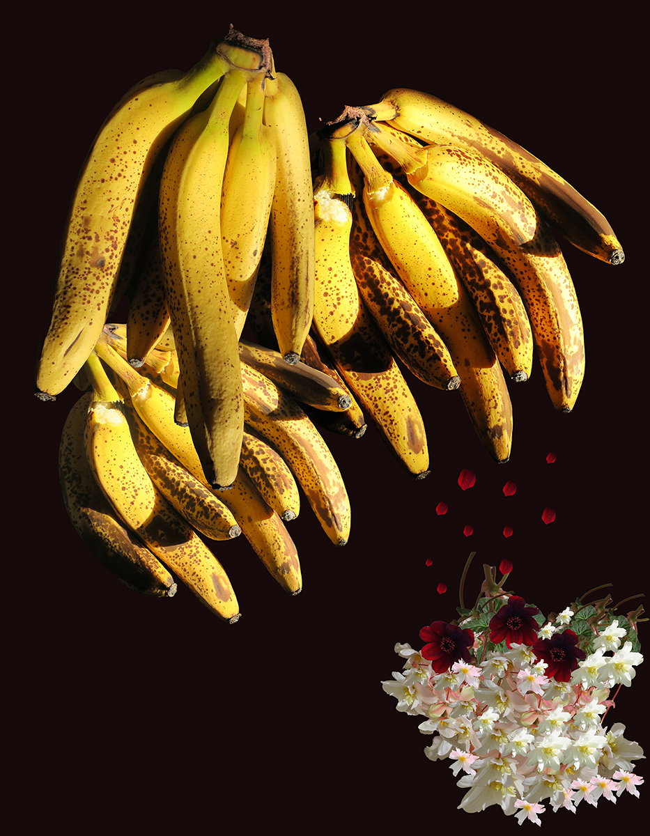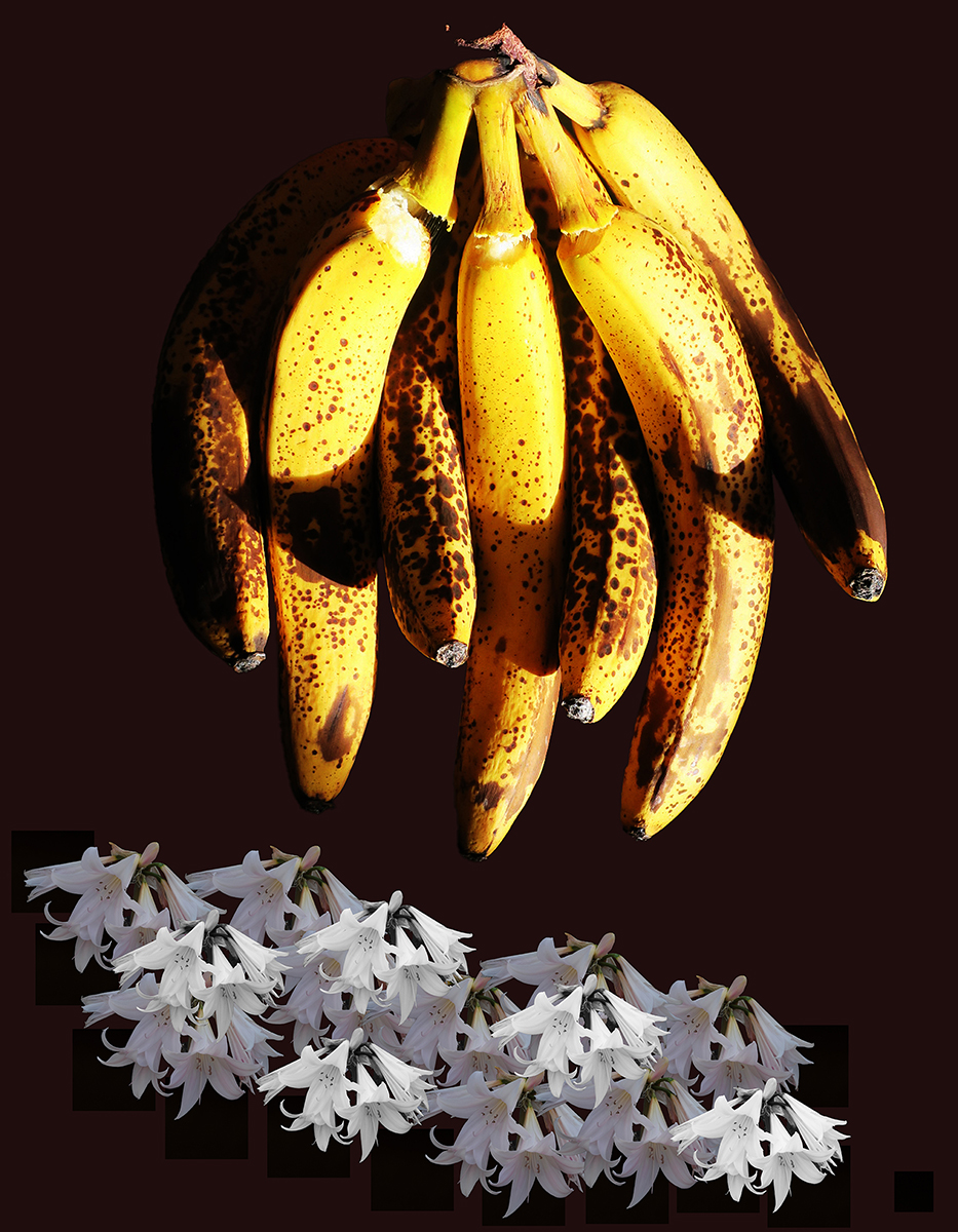 Nous vivons dans un monde de plus en plus régressif et primitif. Les sociétés modernes et traditionnelles, en apparence opposées, n’employant pas forcément les mêmes outils, se rejoignent pour soumettre et uniformiser les individus, transformés en esclaves, à qui, sans qu’ils le perçoivent, on enlève la capacité d’être, de penser, résister, créer ou décider par eux-mêmes. L’égalité des droits, depuis bien longtemps, sous la bannière du patriarcat, est devenue caduc puisqu’on a inventé la notion d’ «infériorité », pour se délecter du plaisir de dominer : les sexes, les races, les communautés, les cultures, les continents, les pays, les classes sociales … reconnus comme inférieurs. Cette série de photos métaphoriques relate l’histoire de la Domination, tout d’abord masculine, représentée par l’ascendance monstrueuse des bananes qui isolent, assujettissent, ou sacrifient les fleurs, figurant le genre féminin. Le renversement de la domination patriarcale, imaginée, n’est guère une solution, puisque nous assistons à la même logique guerrière, inversée, et nourrie par la Haine. L’Amour vrai - la croyance en les capacités et l’intelligence de chacun, comme individu, et non pas comme sexe - est le seul moyen de rendre inutile l’instinct de Domination pour rendre possible le Partage.