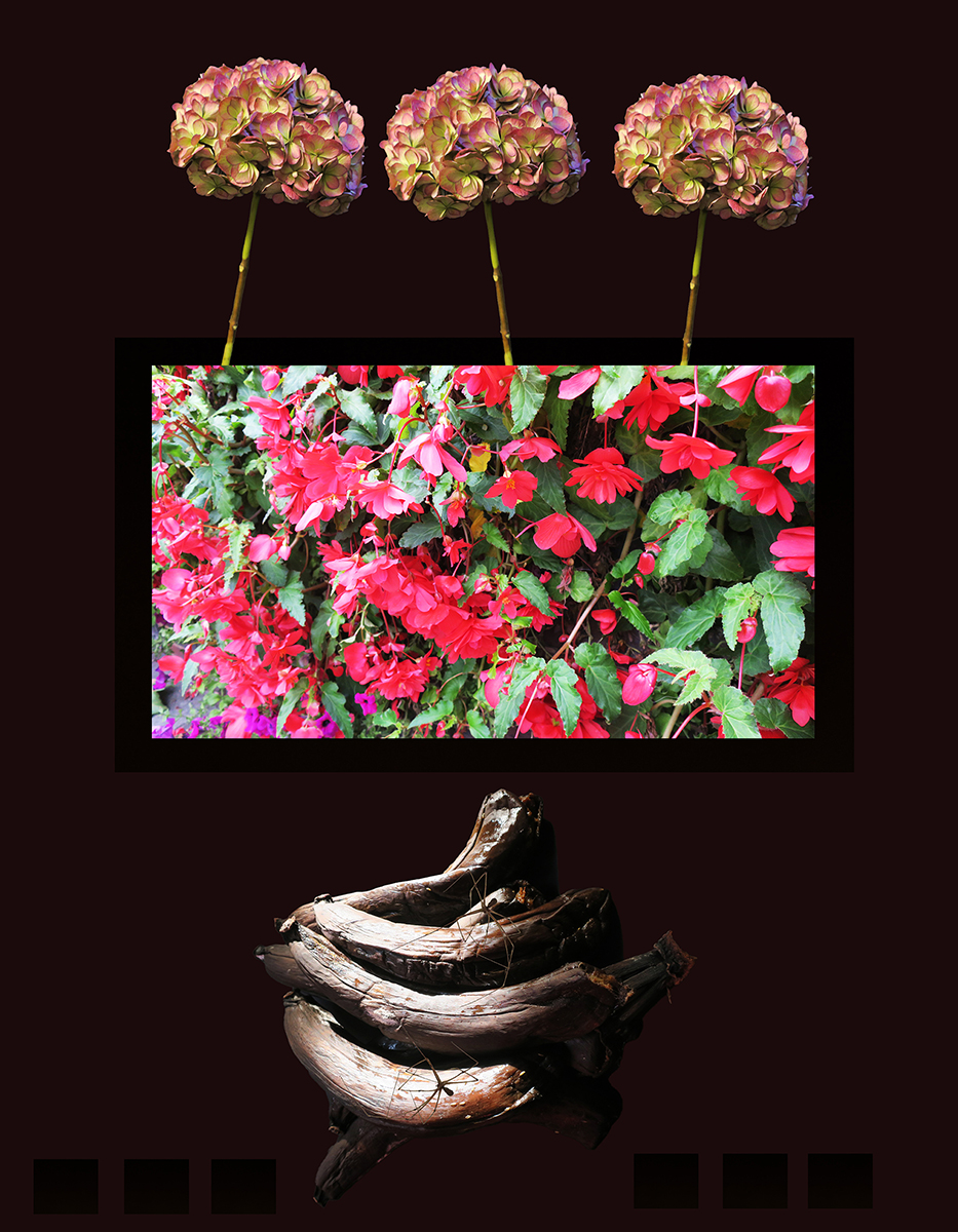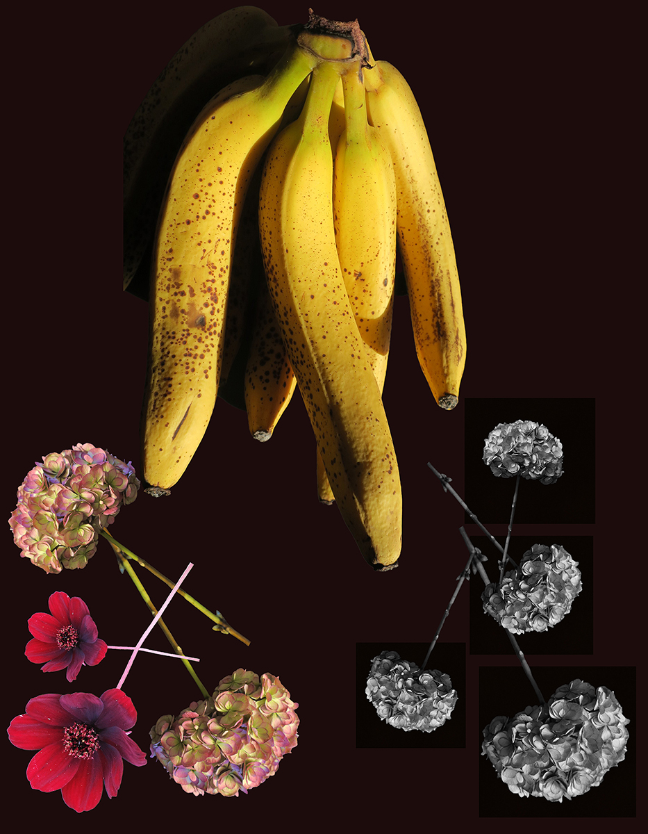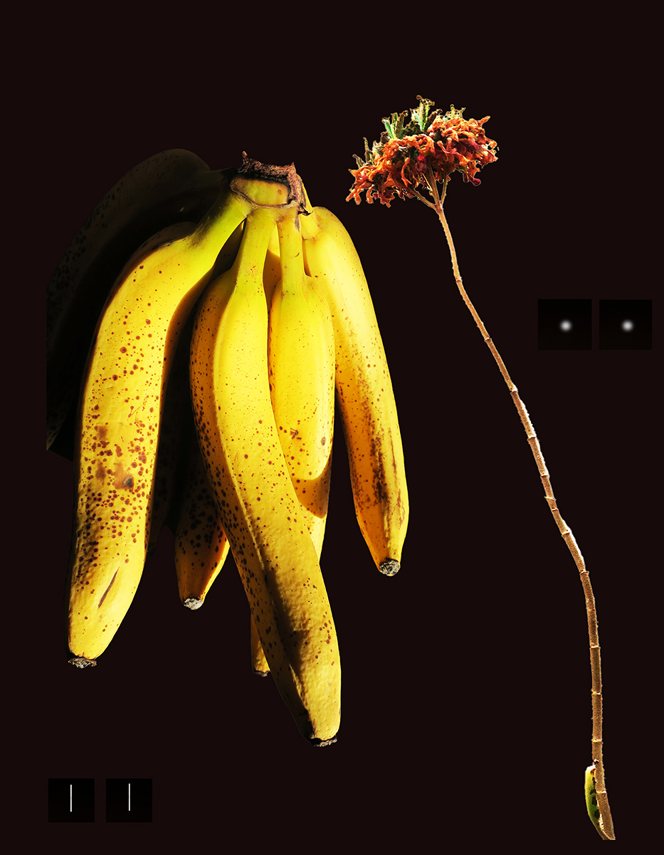 Nous vivons dans un monde de plus en plus régressif et primitif. Les sociétés modernes et traditionnelles, en apparence opposées, n’employant pas forcément les mêmes outils, se rejoignent pour soumettre et uniformiser les individus, transformés en esclaves, à qui, sans qu’ils le perçoivent, on enlève la capacité d’être, de penser, résister, créer ou décider par eux-mêmes. L’égalité des droits, depuis bien longtemps, sous la bannière du patriarcat, est devenue caduc puisqu’on a inventé la notion d’ «infériorité », pour se délecter du plaisir de dominer : les sexes, les races, les communautés, les cultures, les continents, les pays, les classes sociales … reconnus comme inférieurs. Cette série de photos métaphoriques relate l’histoire de la Domination, tout d’abord masculine, représentée par l’ascendance monstrueuse des bananes qui isolent, assujettissent, ou sacrifient les fleurs, figurant le genre féminin. Le renversement de la domination patriarcale, imaginée, n’est guère une solution, puisque nous assistons à la même logique guerrière, inversée, et nourrie par la Haine. L’Amour vrai - la croyance en les capacités et l’intelligence de chacun, comme individu, et non pas comme sexe - est le seul moyen de rendre inutile l’instinct de Domination pour rendre possible le Partage.