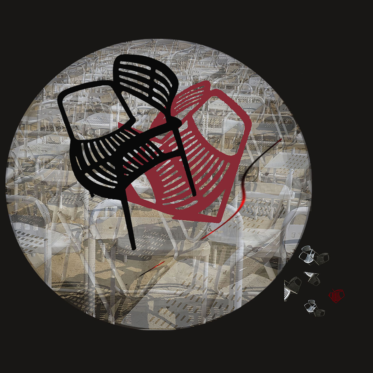 Le pouvoir pourrait être employé à servir un peuple ou aveugler son détenteur. La première série, représentée par le biais de la métaphore de la chaise, ici, attribut du Pouvoir, examine la problématique de la cécité issue du sentiment de toute puissance, à travers des fenêtres floues et sans issue. On perçoit des pouvoirs, comme des marionnettes, suspendues et en mauvaise posture ; des rivalités criminelles ; des humains sacrifiés, voués à l’exil, à l’exclusion, vivant le drame des frontières ; des guerres interminables. La dernière image figure notre monde, coupé en deux : on y découvre des pouvoirs totalitaires qui détruisent et certains, qui sous couvert de la démocratie, créent un vide stérile qui n’est qu’une autre forme de destruction.