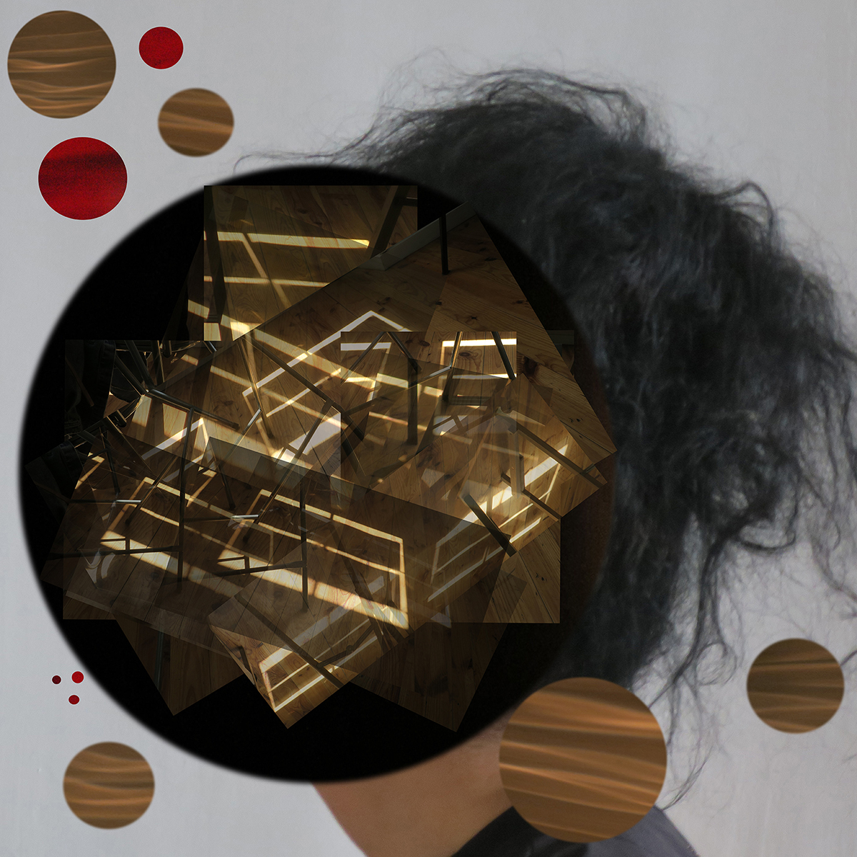 Les trois autoportraits représentent trois visages de l’artiste, penché sur le monde contemporain. Le premier, à travers les clairs obscurs, témoigne de sa complexité labyrinthique qui le rend de plus en plus indéchiffrable. Le second, est une mise en scène de la déstructuration du monde et de l’humanité et la dernière, à travers les deux visages penché et redressé de l’artiste, prisonnière du poids d’un pavé, décrit le combat du mouvement de la Pensée et de l’Art contre la violence qui ruine le monde.